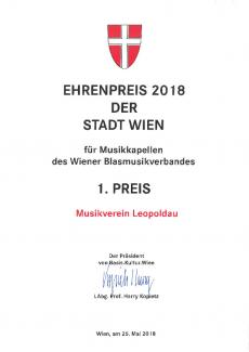 Im Rahmen dieser Veranstaltung wird auch immer der Ehrenpreis der Stadt Wien überreicht. Auch dieses Jahr ging der Ehrenpreis wieder an den Musikverein Leopoldau, der dadurch für die erbrachten Leistungen (z.B. bei der Konzertwertung, Musik in kleinen Gruppen, ...) geehrt wurde. Die weiteren Plätze waren Musikverein Rudolfsheim-Fünfhaus mit Platz 2 und die BOKU Blaskapelle mit Platz 3. Der Sonderpreis ging dieses Jahr an den Blasmusikverein St. Georg-Kagran.