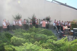 Dabei werden etwa zwei bis drei Märsche und Polkas pro Haus gespielt und die Einladungen zum Sommerfest verteilt.