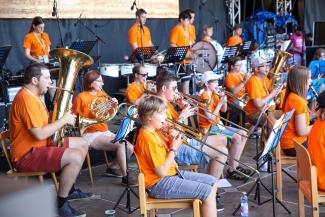 Die Orange-Corporation beim Woodstock der Blasmusik